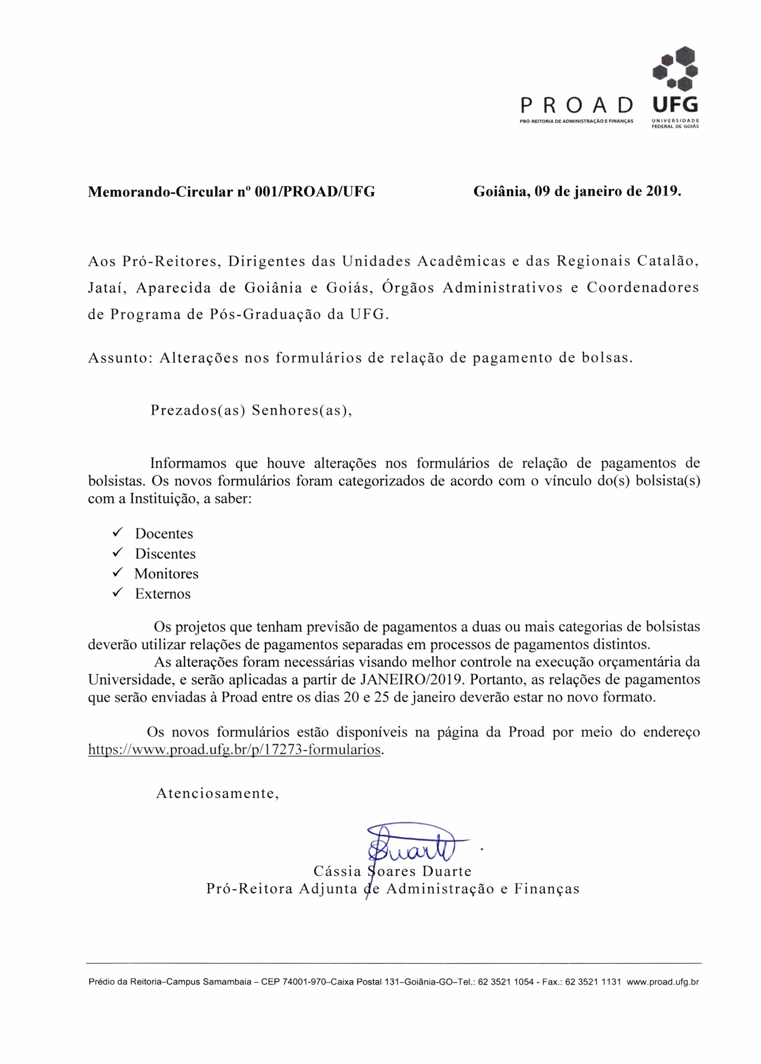 A Proad informa que houve alterações nos formulários de relação de pagamento de bolsistas.
